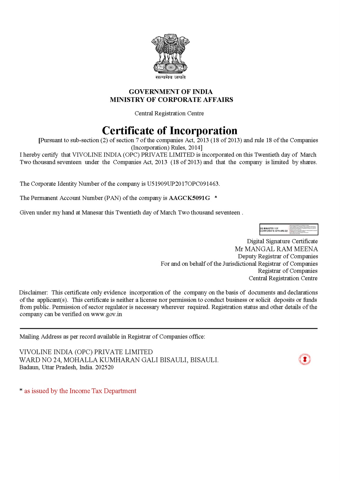 Vivoline India (OPC) Pvt. Ltd.